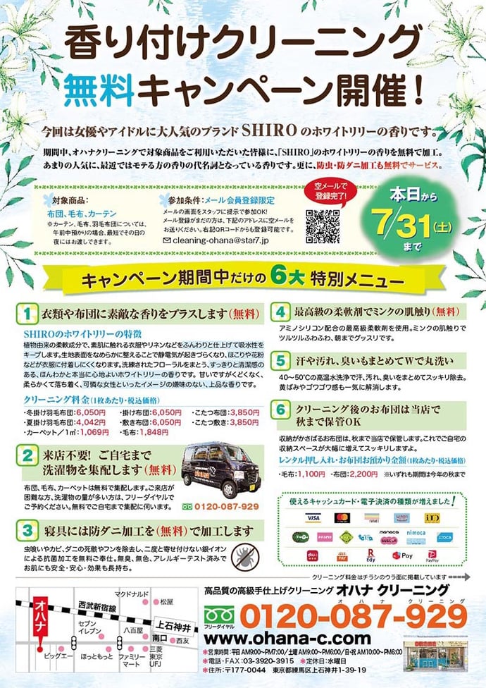 毎年恒例の香り付けクリーニング加工、無料キャンペーン、