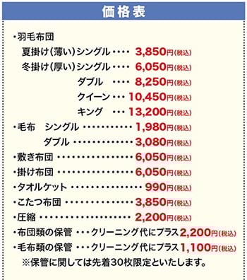 また、布団、毛布など、ご自宅まで無料集配いたします。