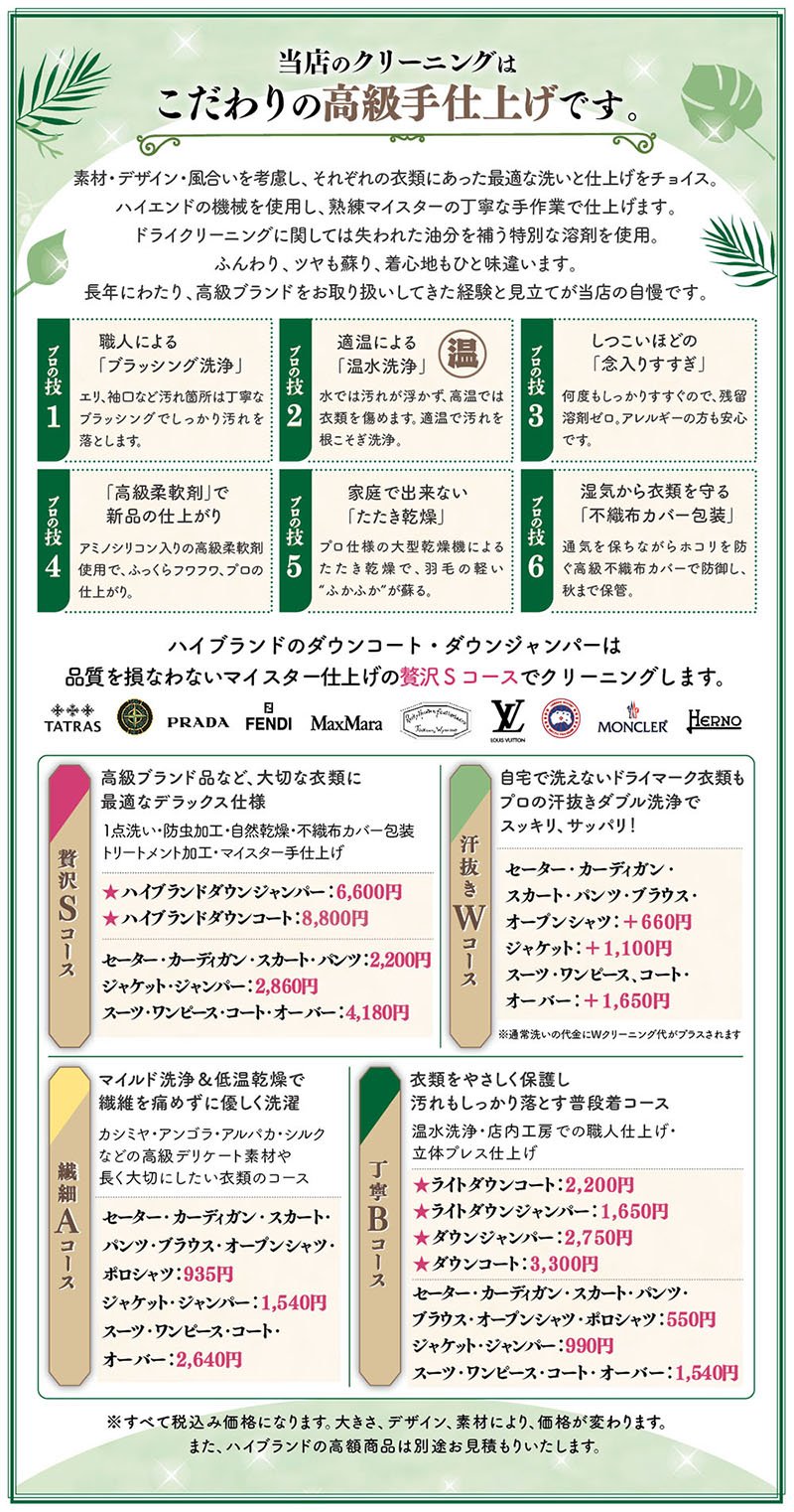 当店のクリーニングはこだわりの高級手仕上げです。